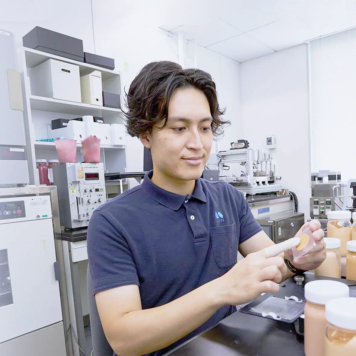 こだわりコーセーの創業者が掲げた「良心的で優秀な商品の供給」を実現すべく、独自性とスピードを重視した研究活動を行っています。常識や前提にとらわれず、高付加価値な化粧品の創造を目指しています。