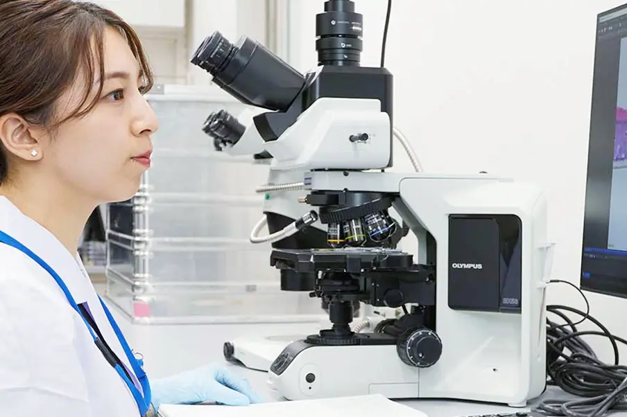 研究の立場から最適な美容成分を検討し、どうすればお客さまにとってより魅力的な商品にできるか、企画開発担当者と打ち合わせを重ねながらモノづくりを行っています。また、今後の商品への応用を見据えた基礎的な皮膚科学研究や新規美容成分の開発も行っています。