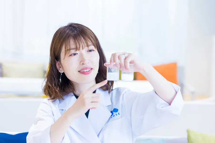 その『守るべきところ』と『新しくするところ』を実現するために、汗をかいた一人がH・Hだ。処方開発担当である彼女の仕事の一つは、新有効成分を化粧水に溶け込ませること。