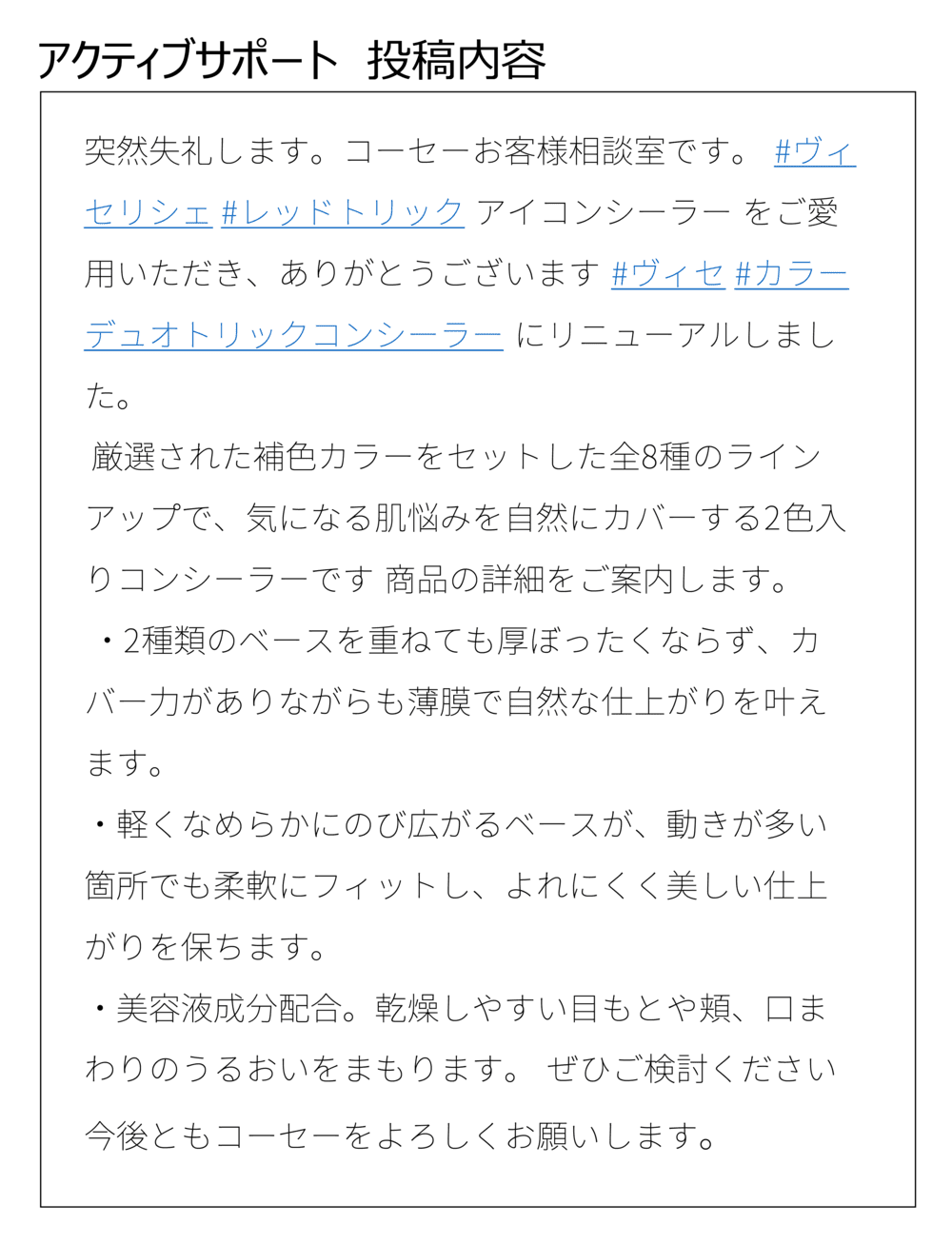 コーセーお客様相談室でのX公式アカウントでの活動例